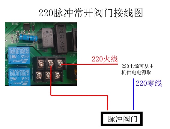 注意:此接线图仅限于220V脉冲常开阀门接线,其他电压或常闭阀门接线请与我公司联系。